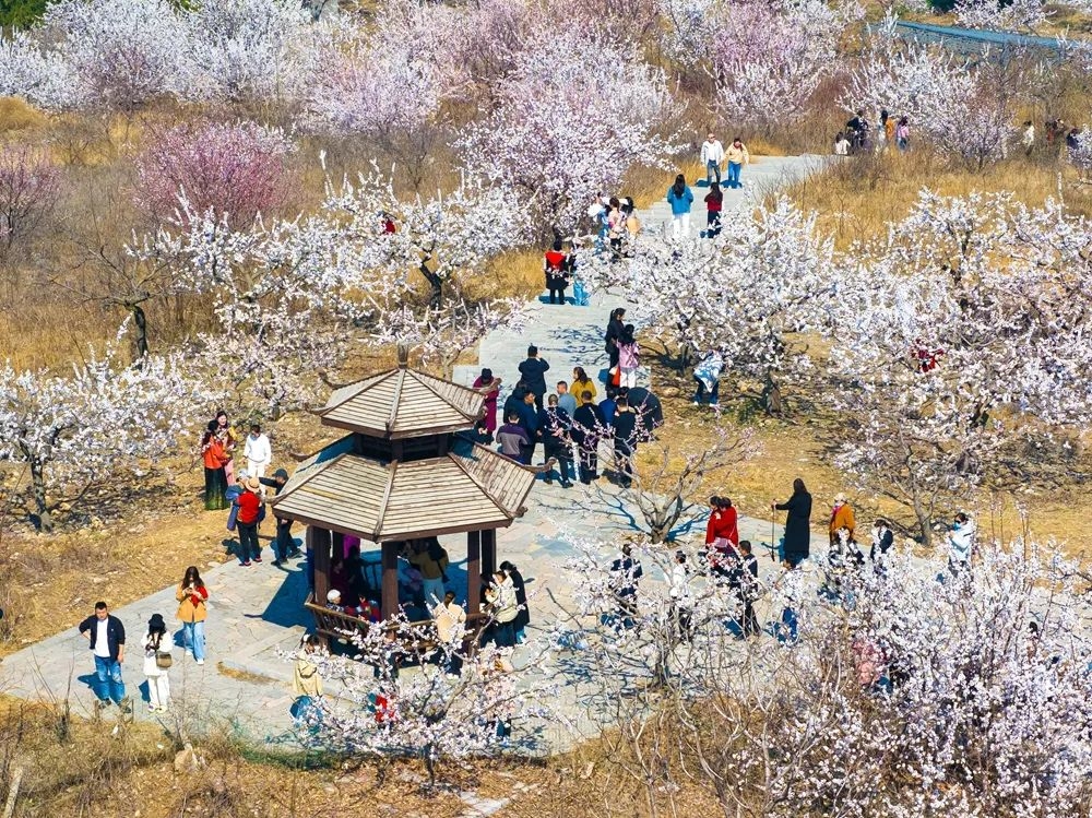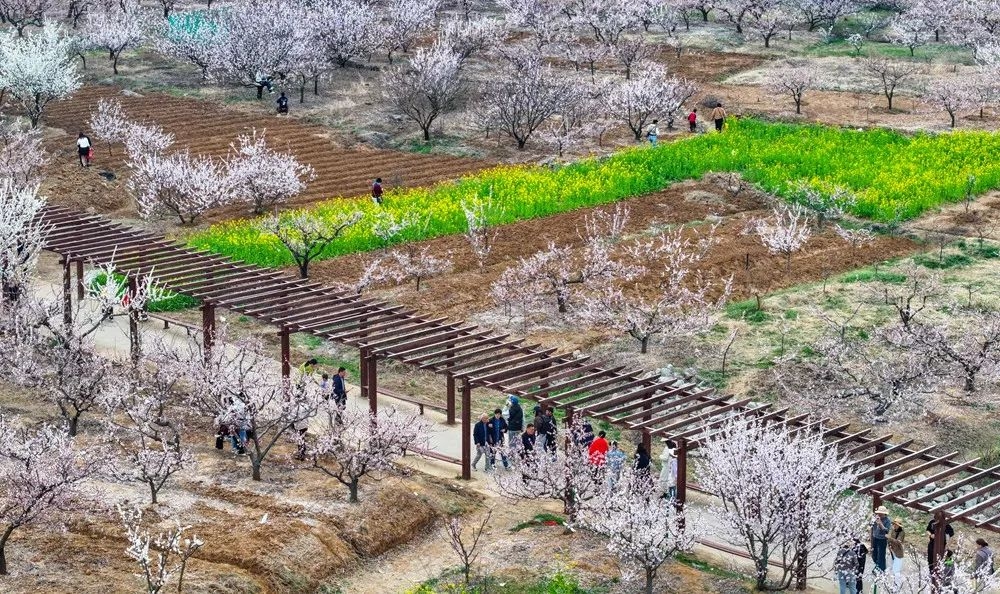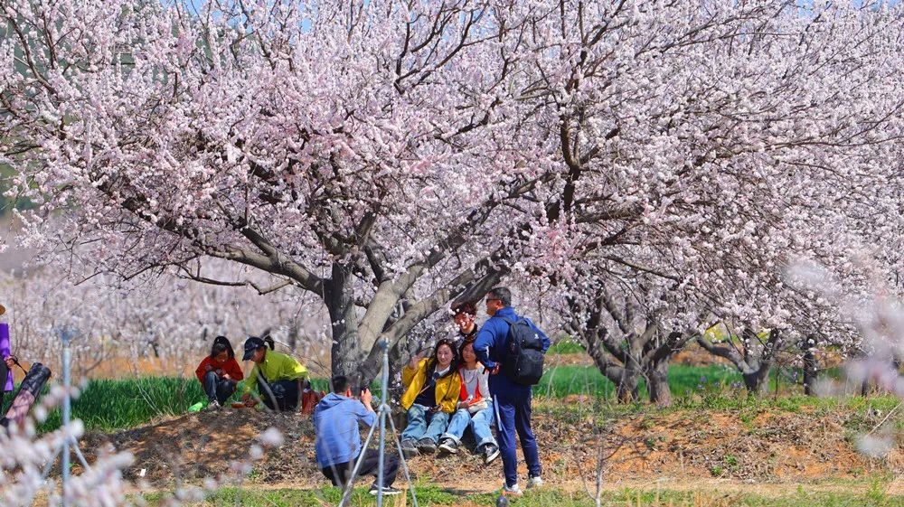 日前,伊庄镇马集村的3000亩杏林、40万株杏树进入盛花期,漫山遍野的杏花竞相绽放,如云似霞,美不胜收。