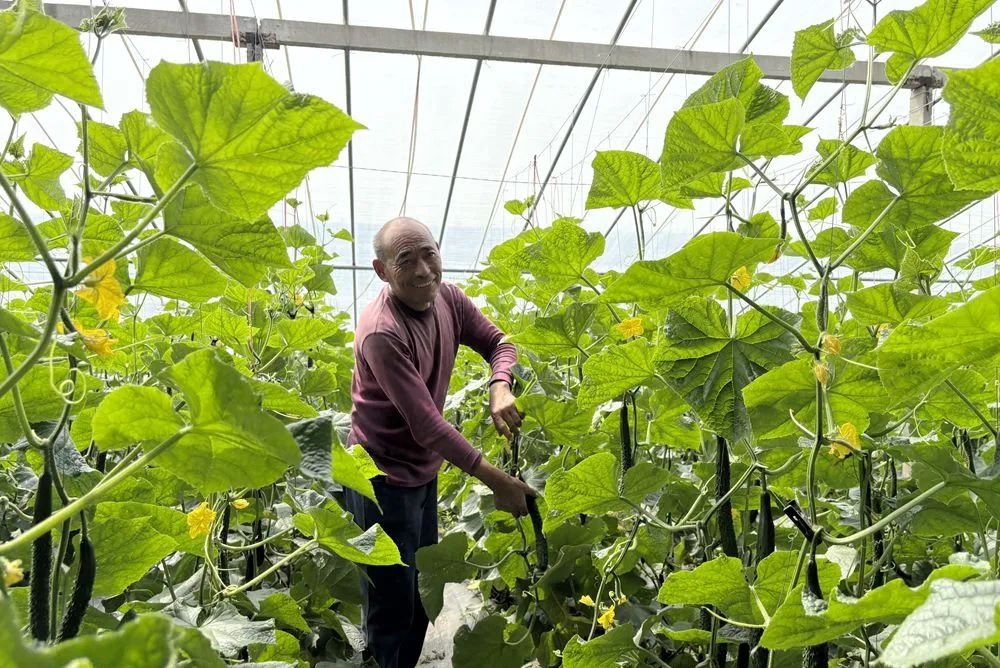 种植户任景文在黄瓜大棚忙里忙外,凭借着多年的种植经验和精心管理,他种植的蔬菜品质好,深受市场欢迎。“近期正值头茬黄瓜采摘期,收获期可持续至6月底。我的黄瓜短把、密刺、青瓤,脆嫩清甜,目前供不应求。每天都能采收400斤到600斤,高峰期能采收800斤左右。”任景文笑着说。