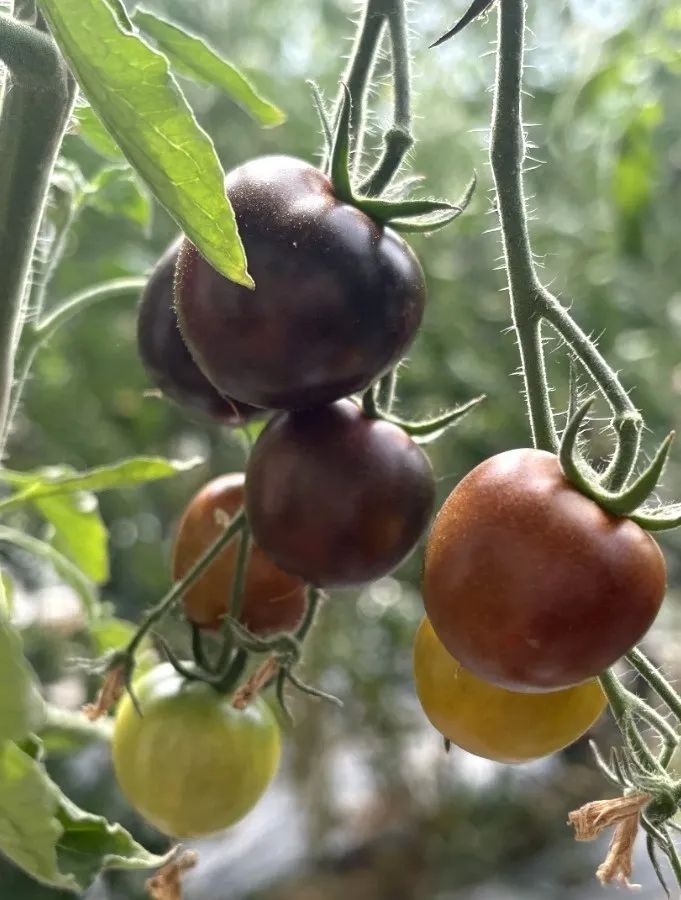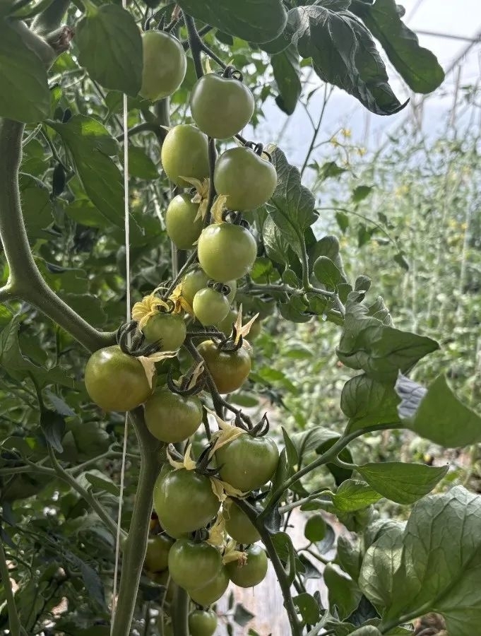 走进近江园番茄王国温室大棚,藤蔓上缀满了红色、青色、紫色等颜色各异的小番茄,阵阵清香扑面而来。果农们忙碌地穿梭在藤蔓间,将一颗颗成熟的小番茄采摘装筐。