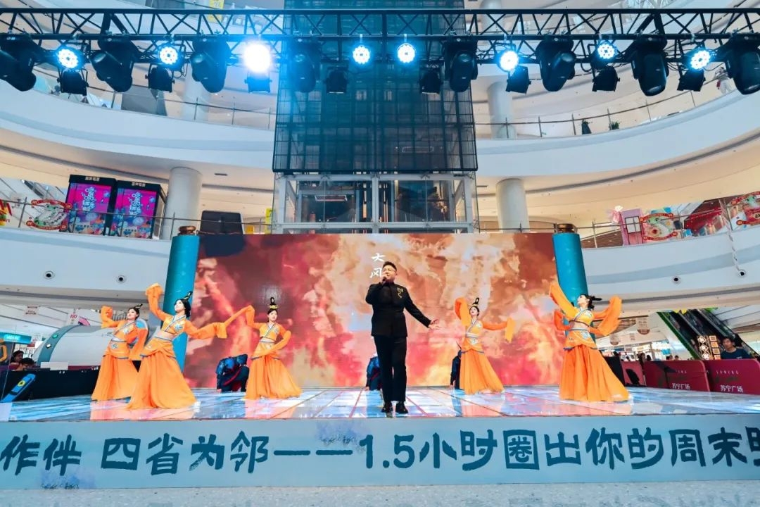 为丰富“乡村旅游看铜山”文旅品牌矩阵,打响铜山“苏皖鲁豫”1.5小时乡村旅游核心圈,强势预热“五一”假日文旅市场,4月19日,“四省铜欢·宿来铜山”苏皖鲁豫1.5小时乡村旅游核心圈推广活动(宿州站)在宿州市苏宁广场热闹开场。