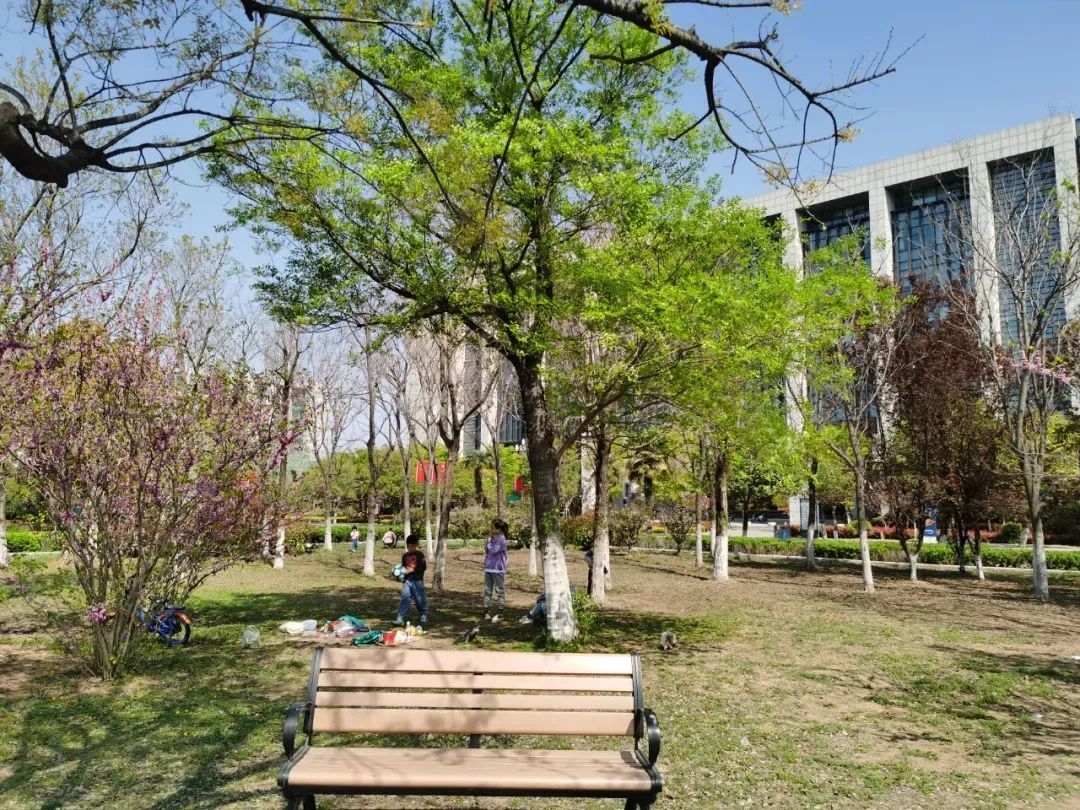 在广场栽种了很多大乔木等绿植,构成充足的林下空间。将现代城市的精致与旷野气息完美融合,俨然城市角落里的一处“天然氧吧”,无疑是风筝爱好者的新晋打卡地。
