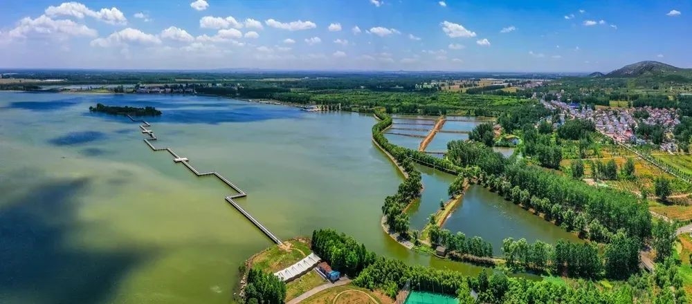 广阔的湖面,微风拂过,波光粼粼。湖边的草地平坦开阔,是放风筝的绝佳场地。