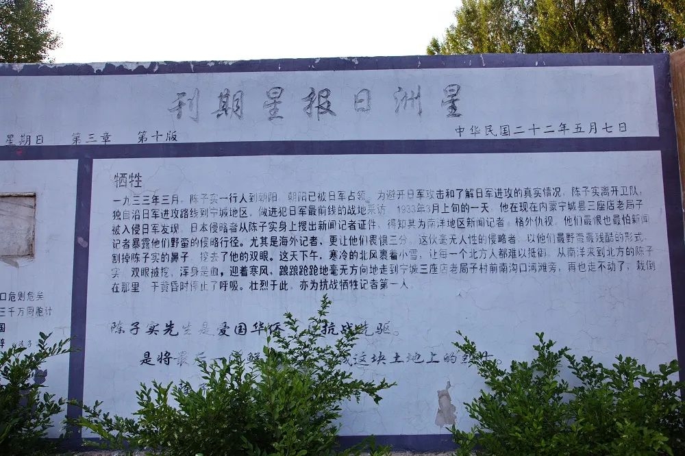 1933年,日军大举进攻热河,在北京的陈子实,要求到抗战一线作战地采访。他从北京绕道朝阳,来到宁城地区。为了不引人注意,将日军的暴虐行径记录下来,他支开护卫队,孤身一人在宁城内秘密采访,可还是被敌人发现。