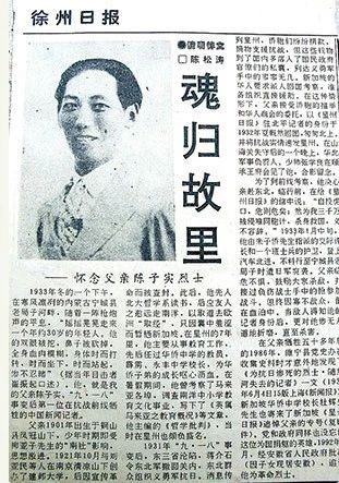 1985年,原铜山县文史办公室主任董尧先生收到睢宁县政协文史办公室主任王行思先生给他的一份材料,说的就是陈子实先生的事迹。董尧先生把陈子实先生的事迹发表在一九八五年的第六期的《铜山文史资料》上发表,没想到这篇文章引起了一个人的注意,他就是当时安徽省淮北市政协副主席陈松涛,他正是陈子实的儿子。