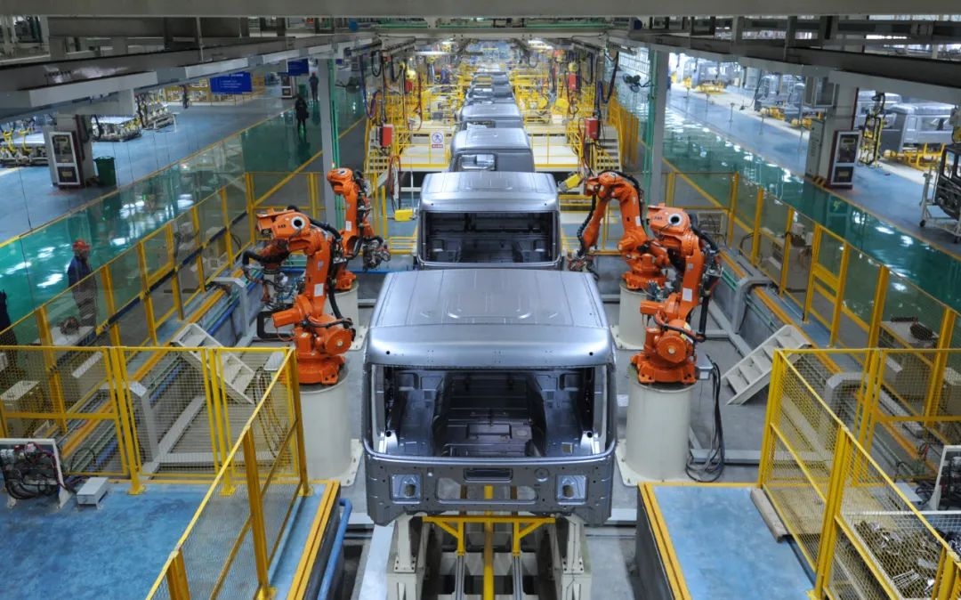 徐工新能源智能装配线是国内最长的一条商用车生产线,主线全长624米,采用U型布置共48个工位,另设有7条辅线,分别是内饰装配线、动力总成装配线、前桥分装线、后桥分装线、平衡轴分装线、车门分装线,仪表台分装线,保证了整车各部件间的有序衔接。