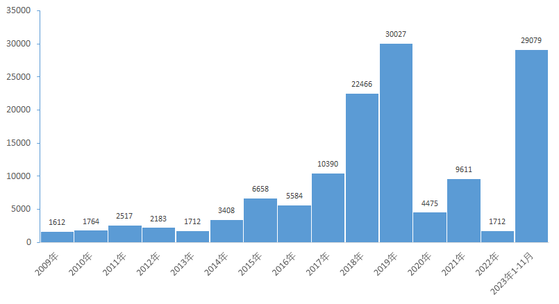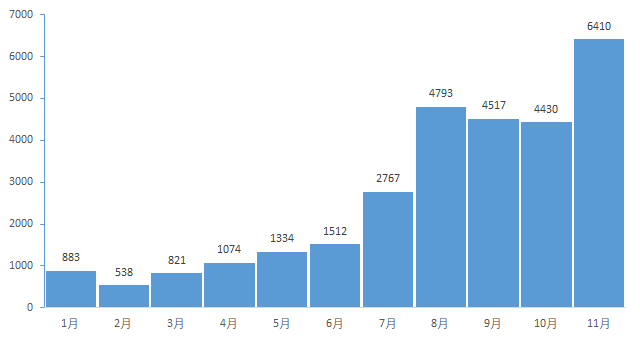 百日咳作为一种法定传染病,国家有监测和报告。2023年1-11月份,全国共报告百日咳29079例,其中7月份开始,发病明显上升,11月份共报告6410例,如下图。