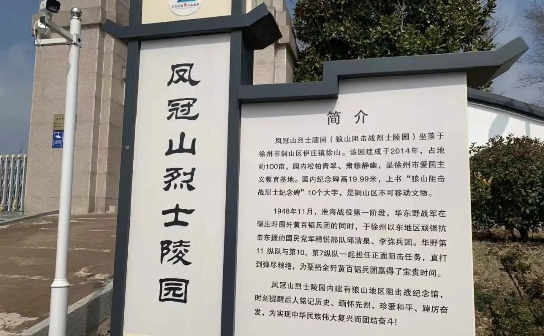 凤冠山烈士陵园是为了纪念那些在淮海战役狼山阻击战中英勇牺牲的烈士而建立的。狼山地区阻击战是人民解放军在解放中原过程中,歼灭国民党军的一次关键性战役。