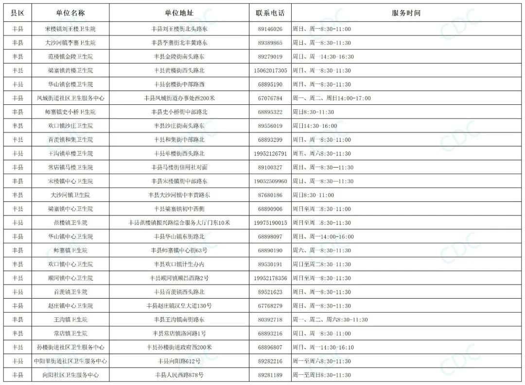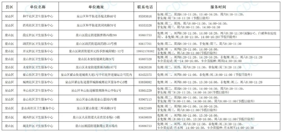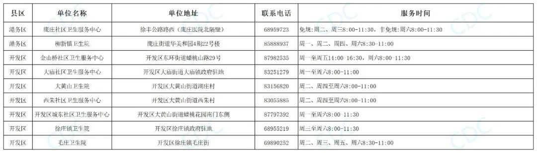 徐州最新预防接种门诊信息