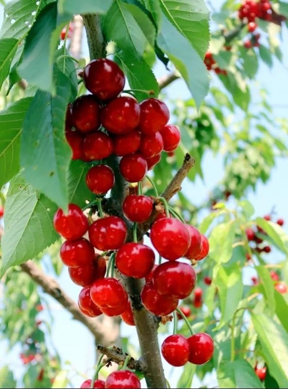 进入5月,铜山的车厘子陆续迎来“采摘期”。果林里,郁郁葱葱的枝叶之间,新鲜成熟的车厘子缀满枝头,果农们正忙着采摘成熟的车厘子,待挑选打包后,销往各大市场。(果农们还为游客留了专属“采摘区”哦~)