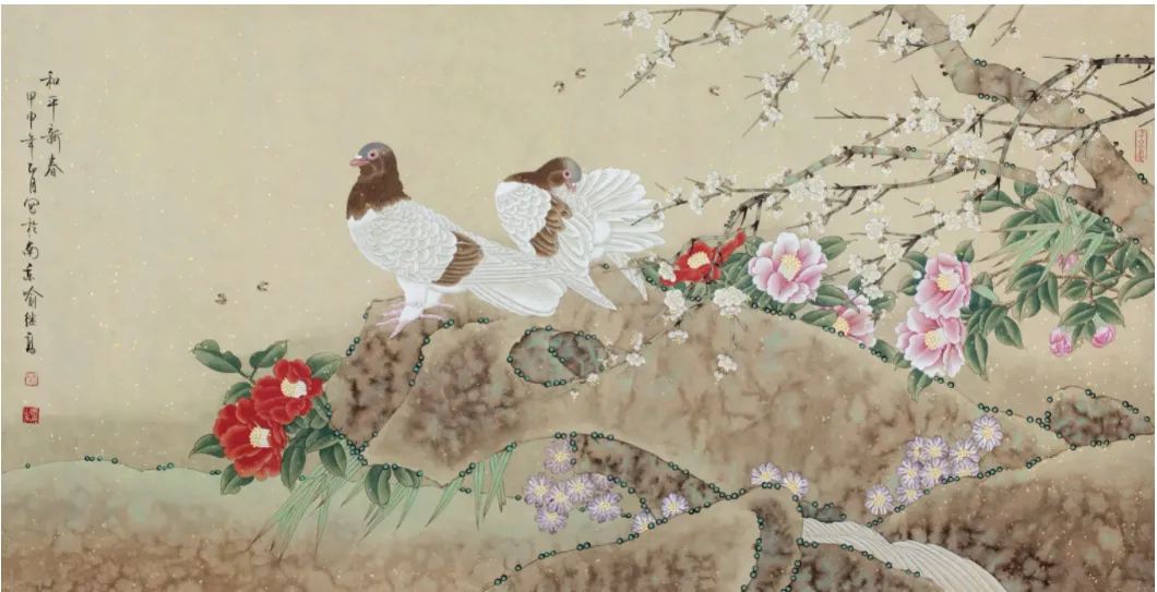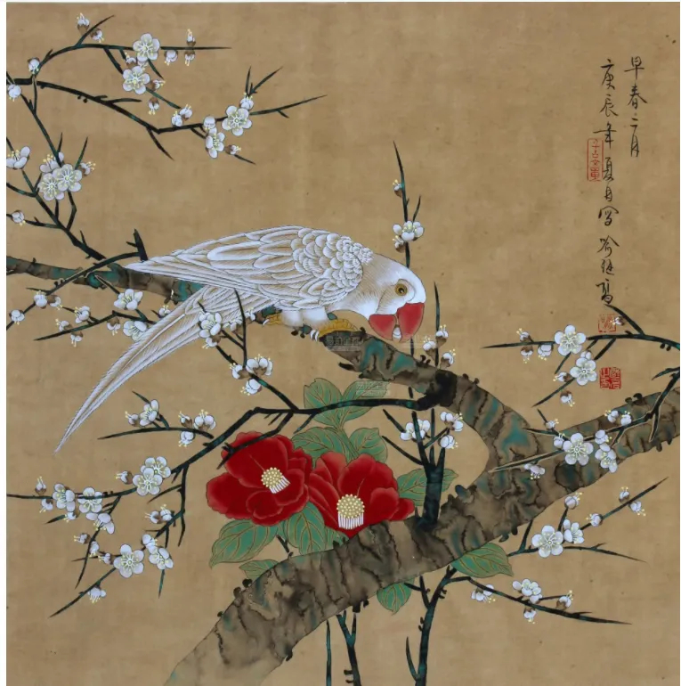 工笔花鸟画,是中国传统绘画重要流派之一,也是世界艺术宝库中的一颗璀璨夺目的明珠。它是在中国画中与写意花鸟画相对应,运用中国特制的毛笔、中国画颜料,在专用的熟宣纸或矾绢进行严谨精致花鸟画创作的一种特殊的画种与技法。
