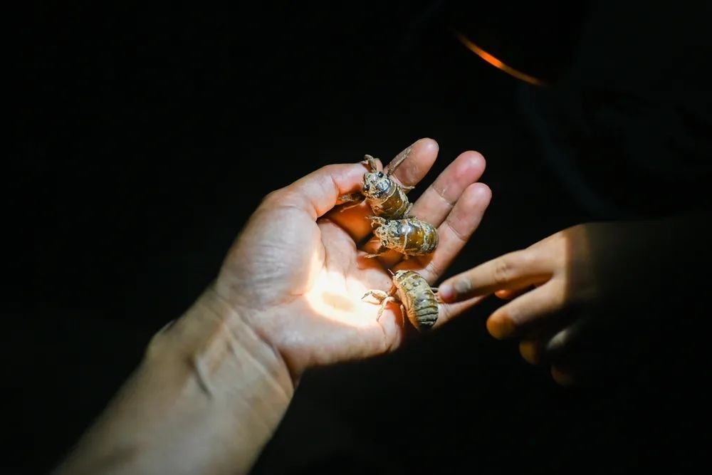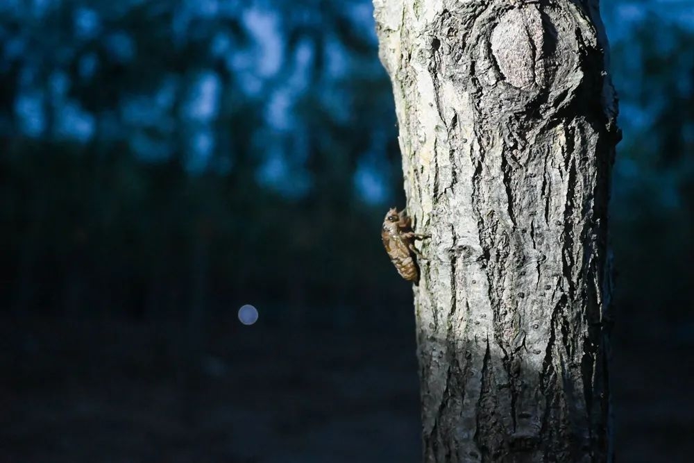 2、晚上七点半,天黑之后金蝉才会从地里爬出来,七点之后有些金蝉已经钻到洞口了哦~