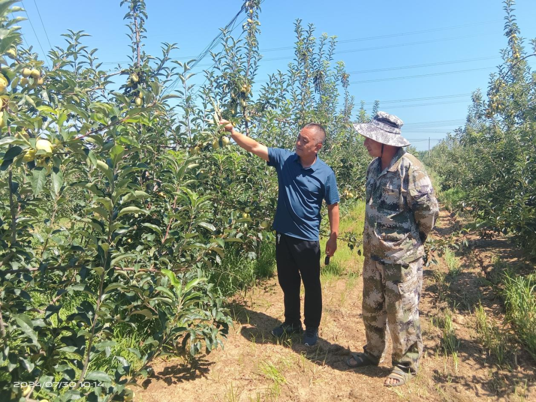 7月30日,刘塘村支部书记张青与农业技术员到村集体领办海棠果园了解情况,进一步提升果园管理技能水平,促进果园标准化管理。