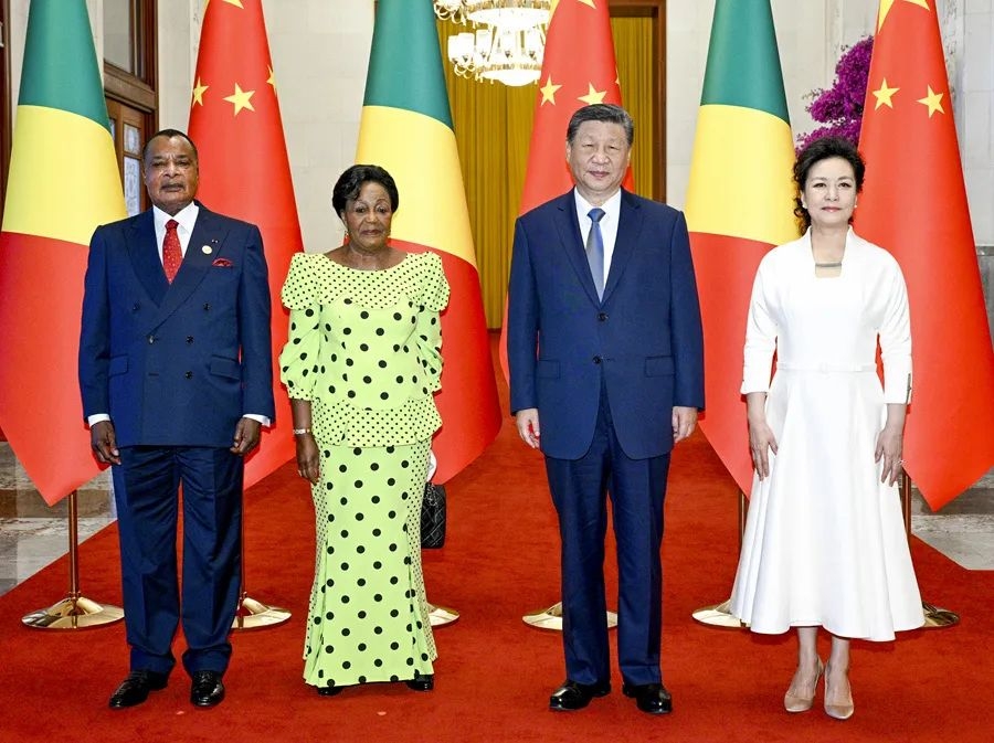 9月6日上午,国家主席习近平在北京人民大会堂同来华出席中非合作论坛北京峰会并进行国事访问的刚果(布)总统萨苏举行会谈。