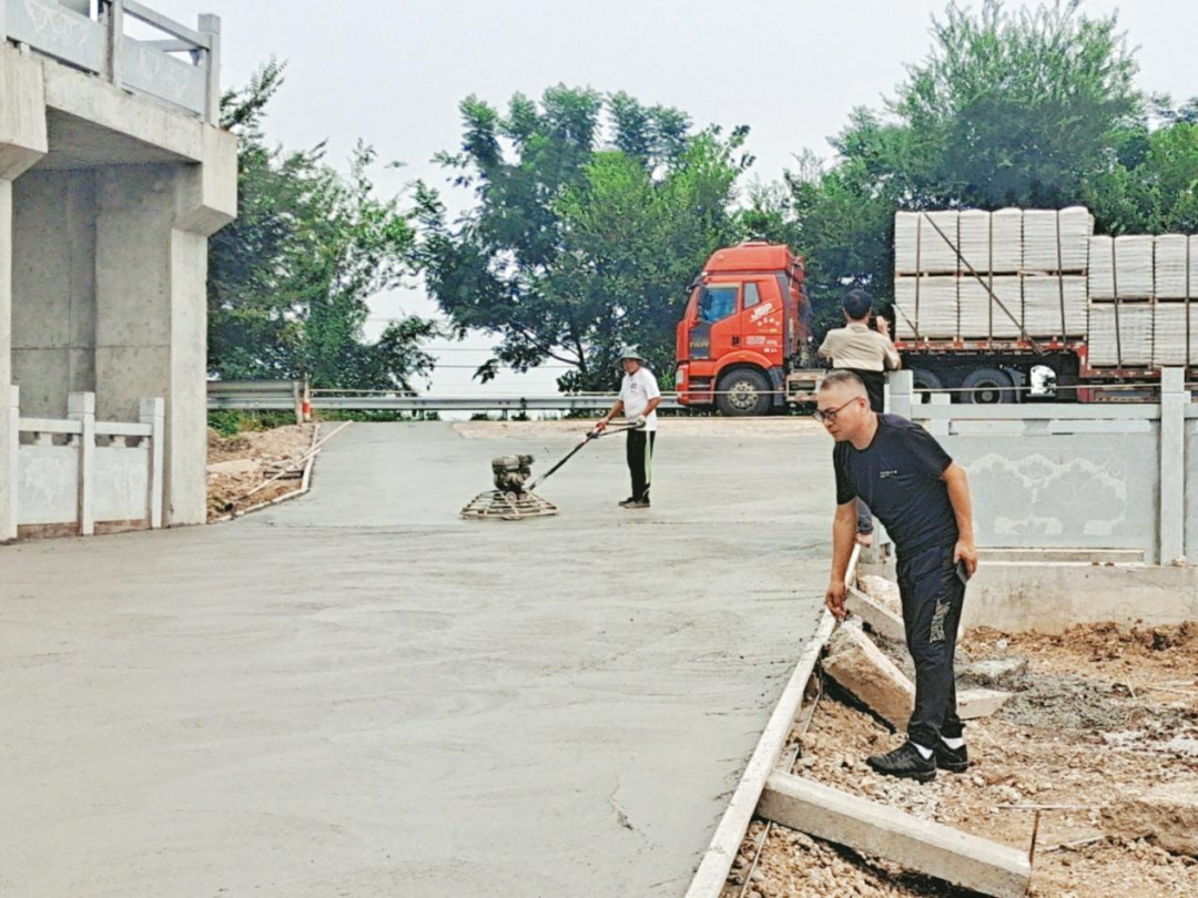 9月10日,丁集村党支部负责人张训峰到丁集东闸路面施工现场查看施工进度,协调解决相关问题。