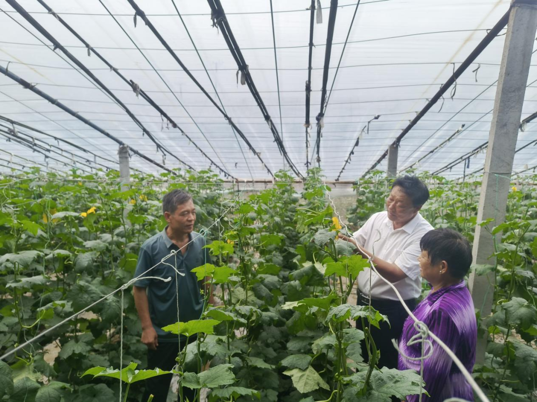 9月10日,贺庄村党支部书记吴书栋到温室大棚了解蔬菜种植情况,并指导如何施肥、喷洒农药,进一步提高蔬菜品质。