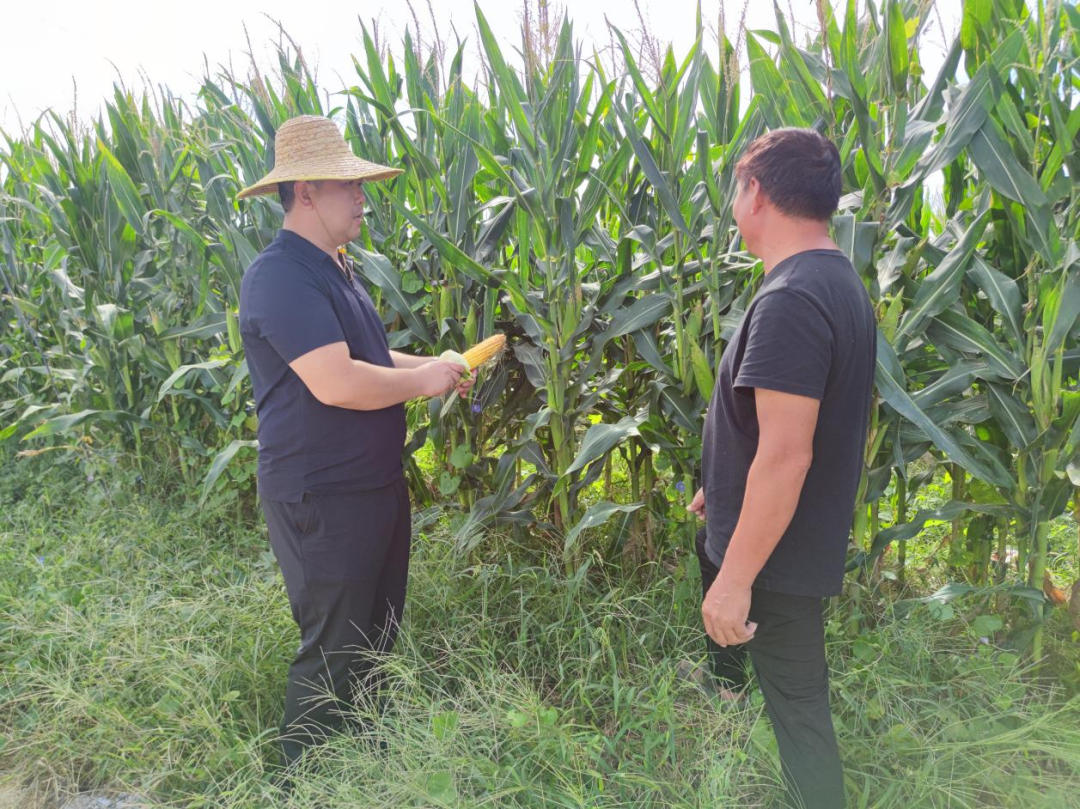 9月22日,北望村党总支书记李勇到村集体领办玉米地查看受灾情况,与种植大户探讨补救措施。
