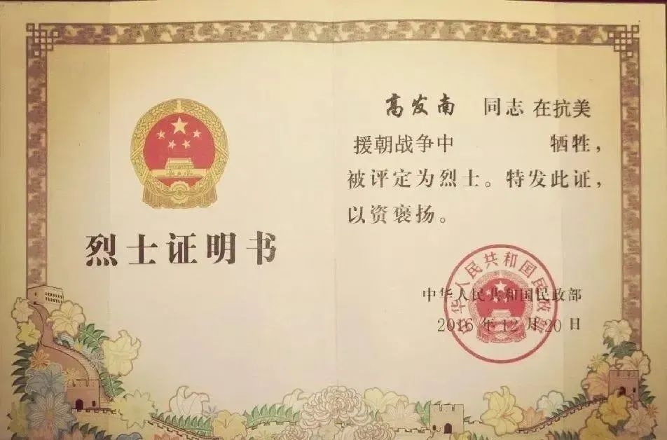 消息传到家乡,高发南的母亲伤心至极,不能提及此事。又因路途遥远而高家无男丁,始终没能前去东北办理手续。此后的六十多年里,只要家人有机会出差到东北,就会到沈阳等地的烈士陵园多方打听,却始终没有结果。