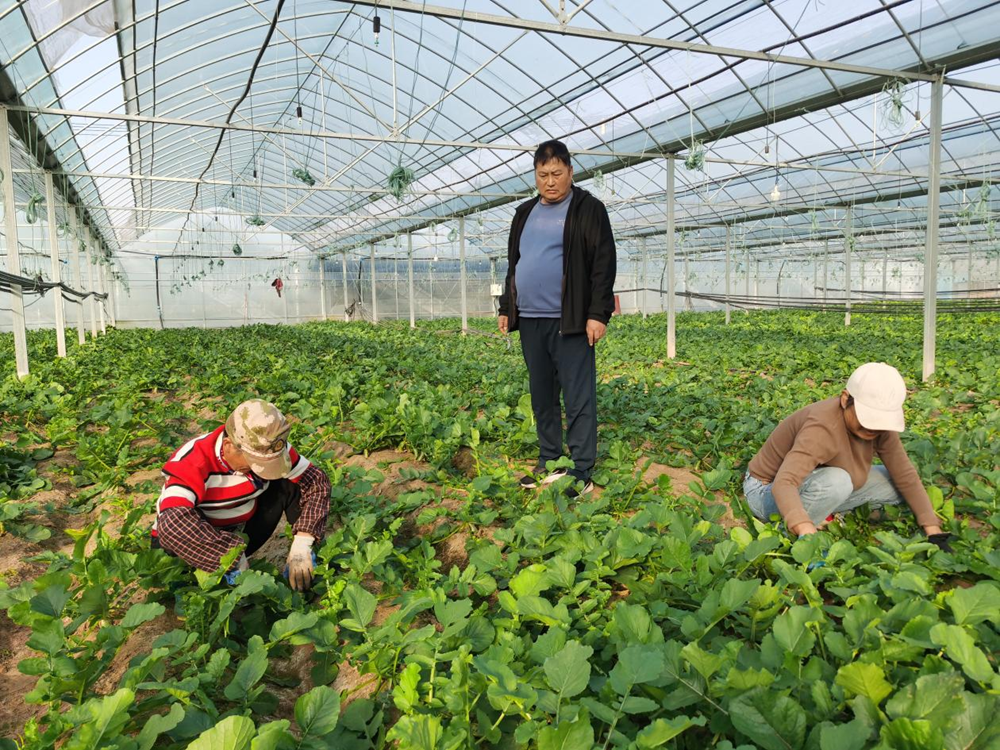 10月29日,后谷堆村党支部书记唐凯来到村集体领办的“弯腰青”萝卜基地,查看萝卜生长情况。