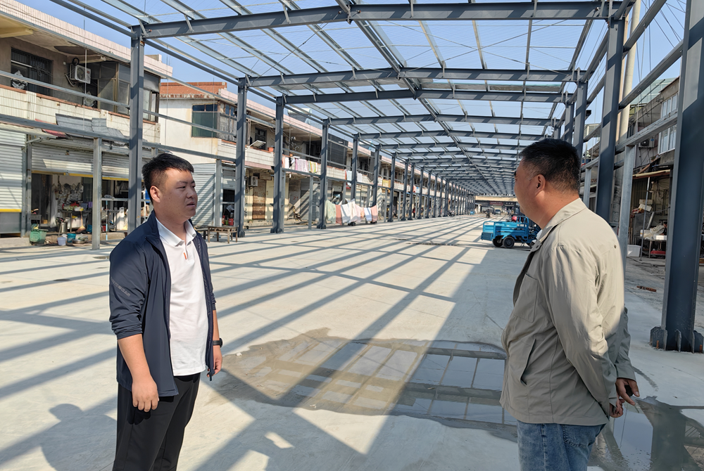 11月4日,西沿村党总支书记曹亚雷到西沿村农贸市场翻建现场了解工程进度,叮嘱项目负责人严把工程质量关、安全关,确保按时投入运营。