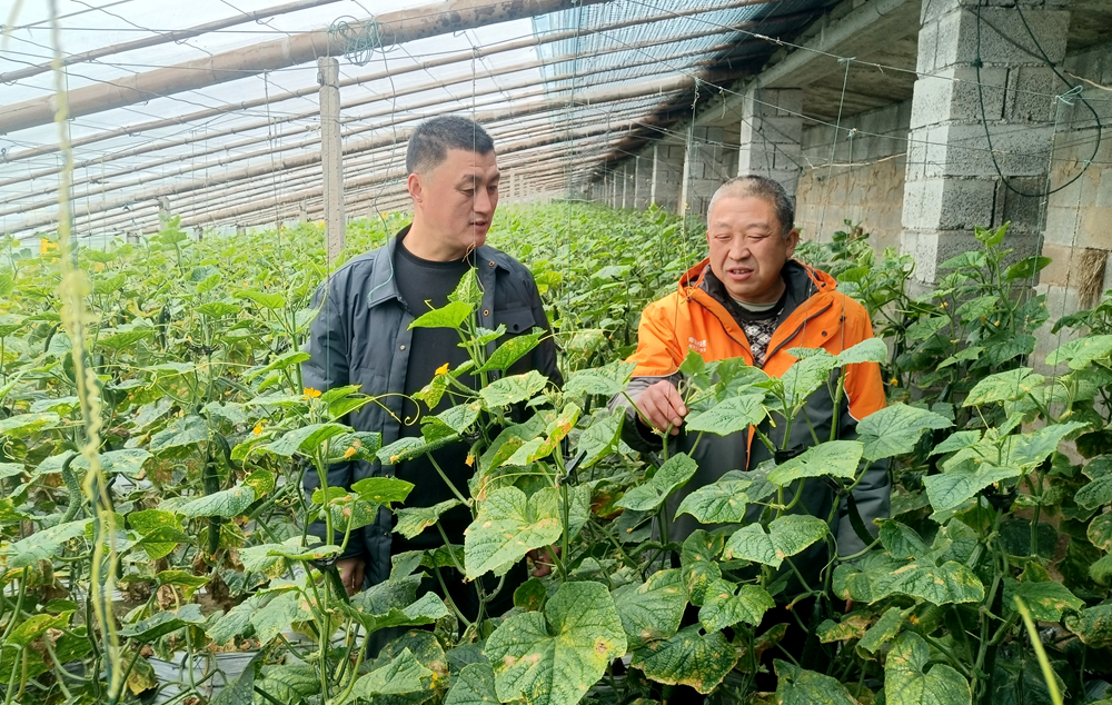12月12日,杨楼村党支部书记张海峰到农户蔬菜大棚了解黄瓜种植、生长和销路等情况,帮助联系销售渠道,解决存在困难,并提醒做好冬季管理。