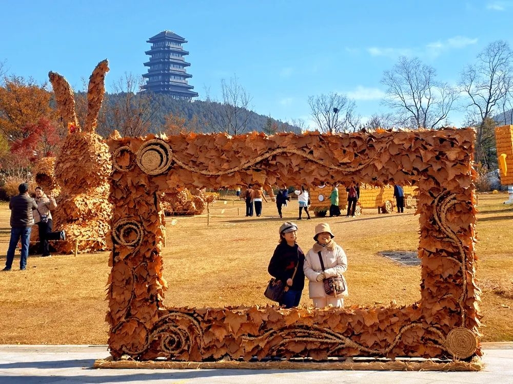 巨型落叶王国在园博园浪漫呈现,以红枫、银杏、梧桐叶和玉米等原材料,堆积成一件件极具创意的大地艺术作品,在这里尽享冬季童话王国的浪漫与美好。