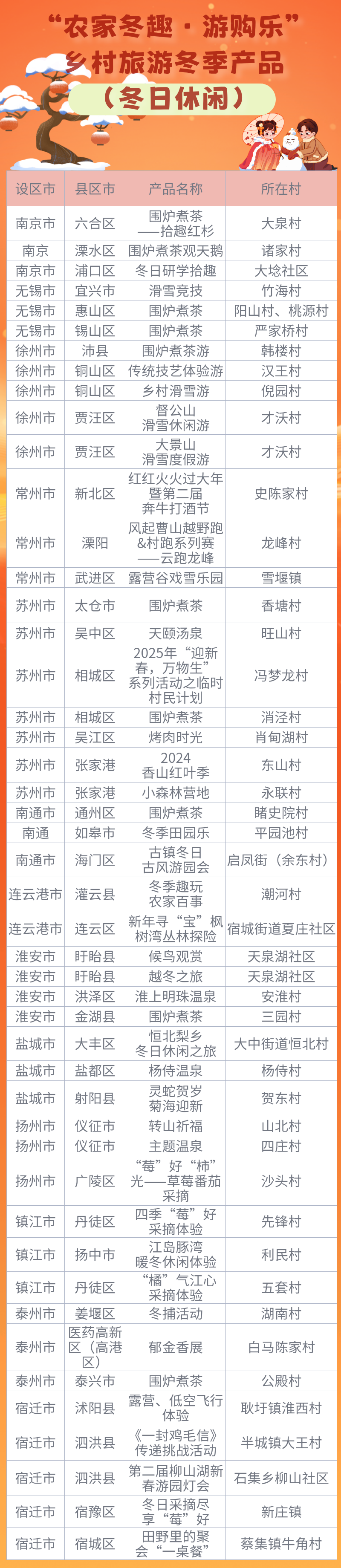 为丰富元旦春节优质文旅产品供给,提振乡村文旅消费,江苏省文化和旅游厅近日推出“农家冬趣·游购乐”乡村旅游冬季产品。