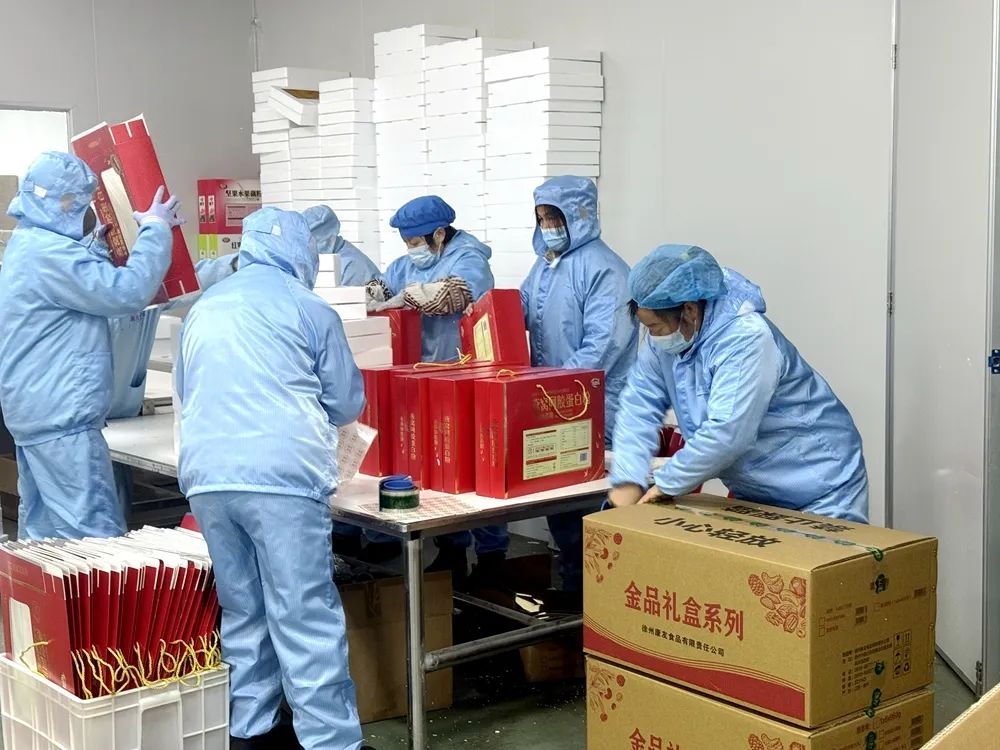 线下,公司积极拓展销售渠道,与各地大型商超、经销商达成深度合作,产品进驻了众多连锁卖场,货架上的产品不断补货,依旧供不应求。线上,借助直播带货,产品迅速走红网络,订单纷至沓来。李新鹏笑着说:“我们的产品在市场上很受欢迎,特别现在临近春节,市场需求量更大,我们工人都是加班加点忙生产。”
