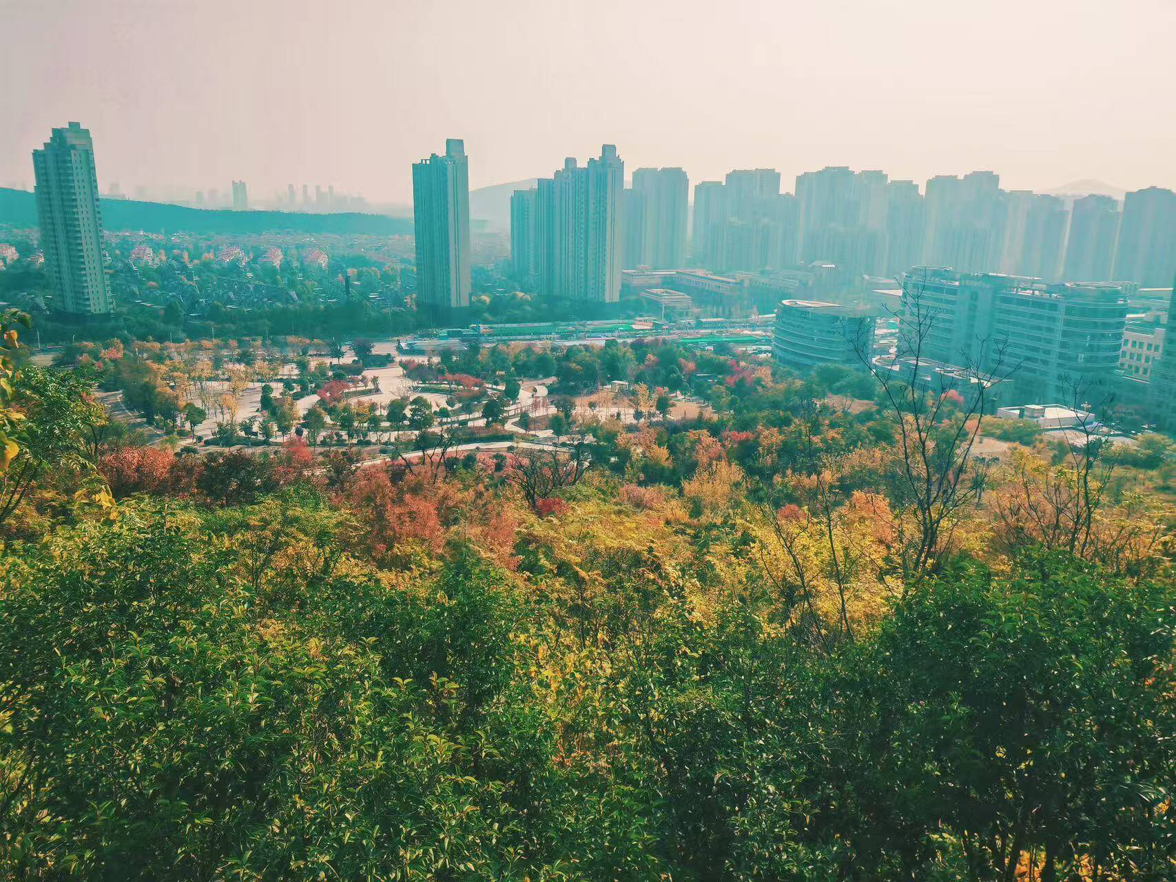 再往远处看,就更漂亮了,整片树林从绿色变成了五颜六色,有绿色、红色、黄色、橙色……好像一个童话世界,有一棵最高的大树,也是最漂亮的,它的叶子竟然有三种颜色,顶部是红色的,中间是橙色的,底部是黄绿色的,好像一团燃烧的火焰,遗憾的是,我和爸爸都不知道这棵大树的名字。