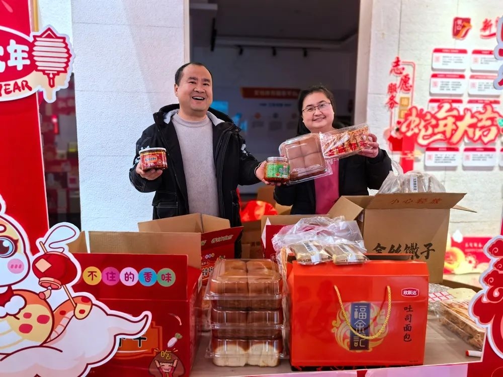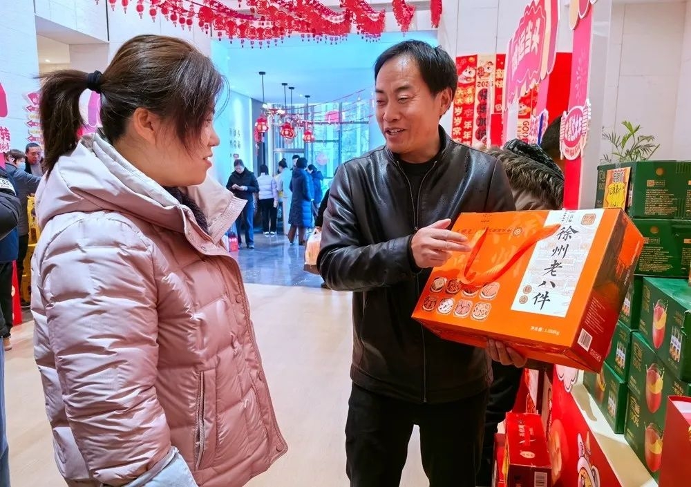 刚走进铜山区新时代文明实践中心,新春市集热闹劲儿扑面而来。徐州老八样、牛肉酱、金丝馓子、饮料、香肠等琳琅满目的特色产品,吸引了众多市民朋友驻足选购,浓浓烟火气不断升温。现场还邀请了手工艺人、精美文创等商户开设摊位,买买买~根本停不下来!