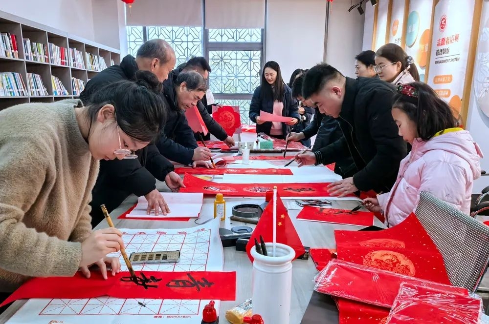 二楼另外一侧,书法家、书法爱好者正忙着现场挥毫泼墨、笔走龙蛇,为群众书写春联,用笔墨传递新春祝福。