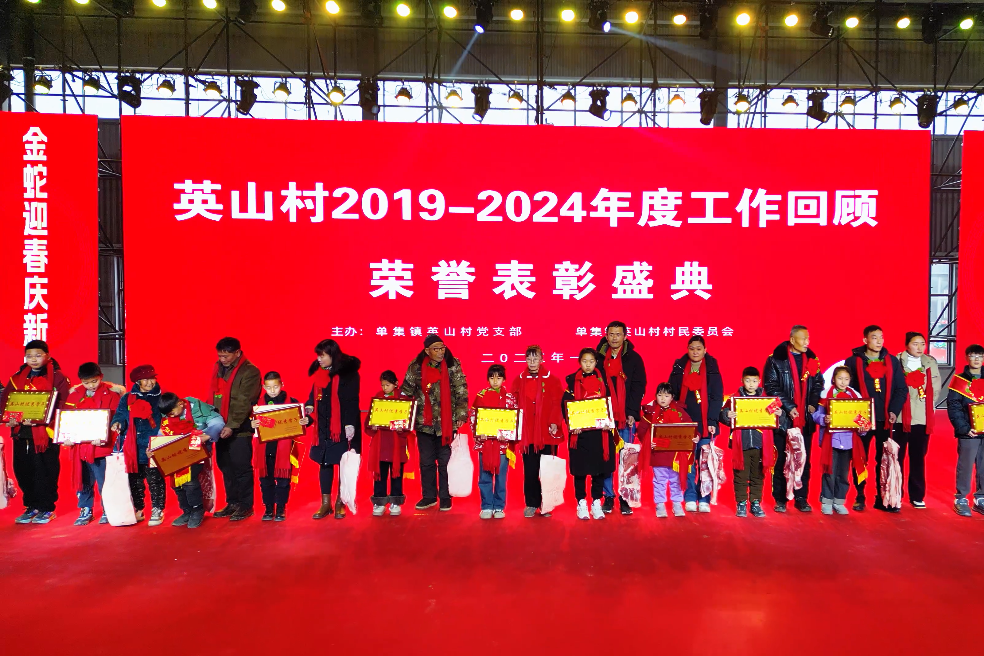 新春来临之际,英山村举办了“金蛇纳福 爱我英山”文艺汇演暨2019-2024年度总结表彰大会,回顾总结英山村发展成果、表彰先进,村民们用舞蹈、歌曲、戏曲、小品等精彩节目,将新年喜庆氛围推向高潮。