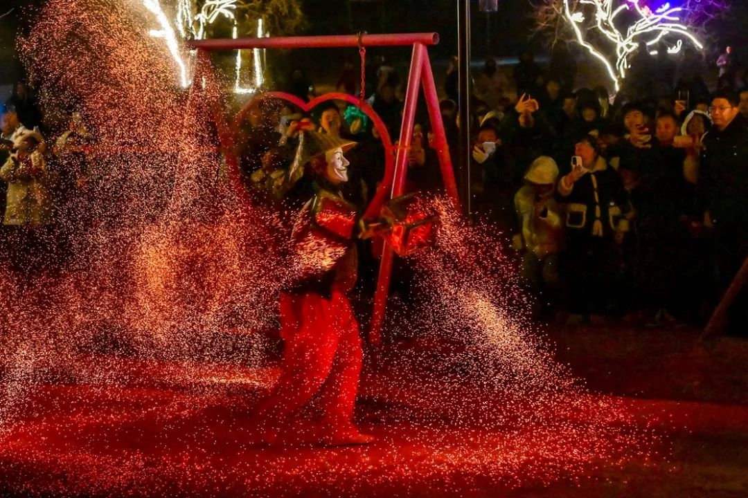 非遗技艺打铁花、火壶等同台表演