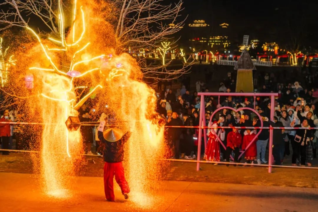 汉王片区。拔剑泉、紫山村、渡江战役总前委旧址等文化旅游景点星罗棋布,市集与夜晚的打铁花表演,在这个春节引燃火热节日氛围。