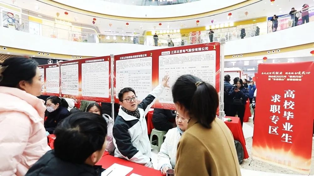 走进铜山万达广场大厅,春意融融、熙熙攘攘。江苏云意电气股份有限公司、江苏五洋自控技术股份有限公司、江苏华辰变压器股份有限公司、徐州中煤百甲重钢科技股份有限公司等众多知名企业展位依次排开,各企业招聘人员热情地向求职者介绍公司概况、岗位要求、薪资福利等信息,现场人气十足、热闹异常。