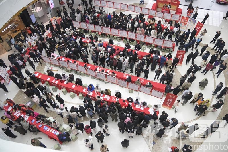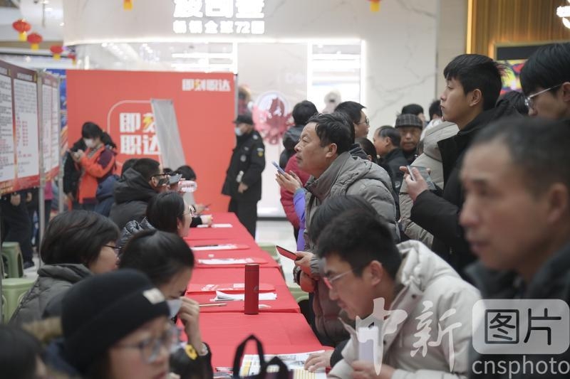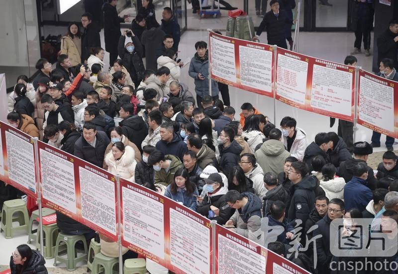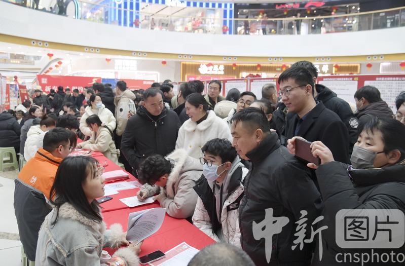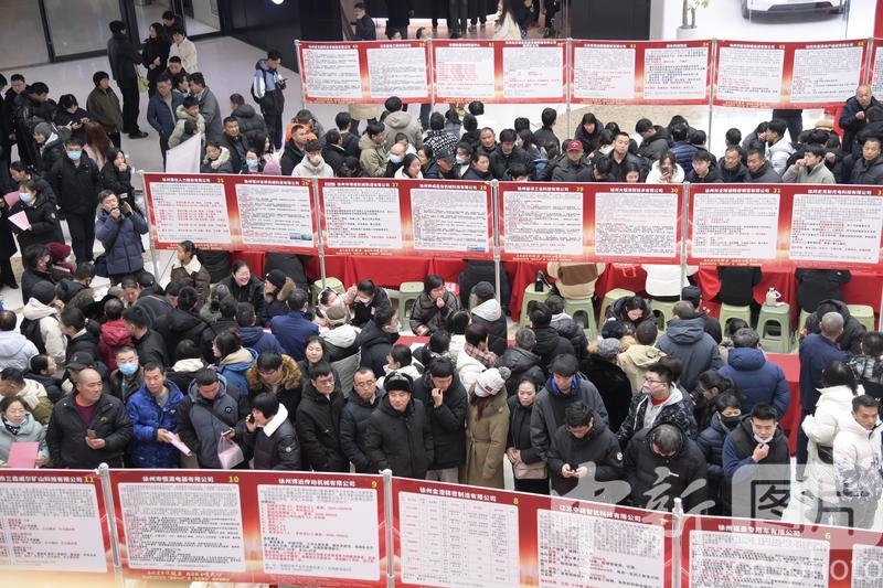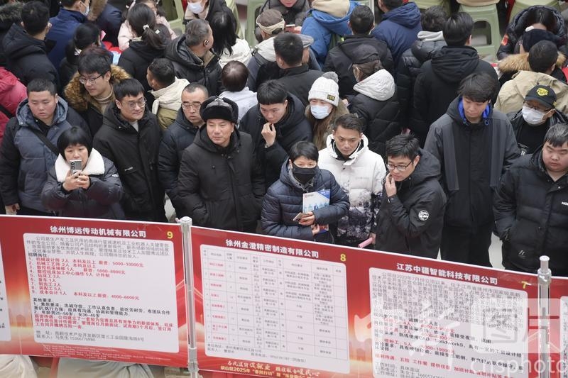 2025年2月2日,在徐州市铜山区2025年“春风行动”暨“乐业铜山”新春招聘会现场,求职者在了解招聘信息。
