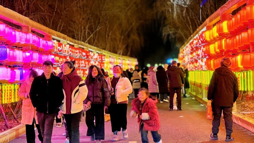 徐州园博园“大型新春花灯庙会”融合特色园林景观、非遗新春花灯、现代光影艺术、精彩民俗演艺、热闹美食庙会、趣味游乐互动等特色场景,年味十足,高热开局,开幕首日即迎来“开门红”,实现单日接待游客4.5万人、营收破百万的亮眼成绩。假日期间累计接待游客12.68万人次、同比增长155%。