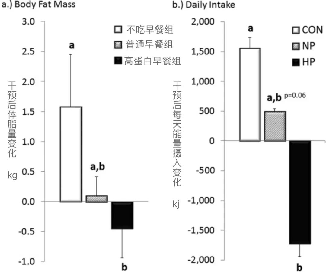 提高早餐中蛋白质的比例,不仅会让全天的能量摄入减少,超重者体重和体脂也会掉得更快。有研究人员找来57名体重偏高的青少年,分成三组测试早餐对体重的影响: