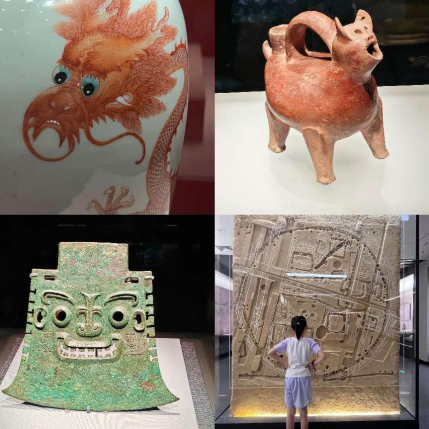 博物馆是爸爸妈妈最喜欢的地方,每到一个城市,他们都会带我去博物馆“打卡”。虽然很多文物我还看不懂,但我总能从中找到乐趣。瞧,那条龙画像多俏皮,陶瓷狗呆萌可爱,陶俑长袖善舞,青铜器咧嘴微笑,仿佛在和我打招呼。通过这些“老朋友”,我慢慢了解了中华文明的灿烂历史。