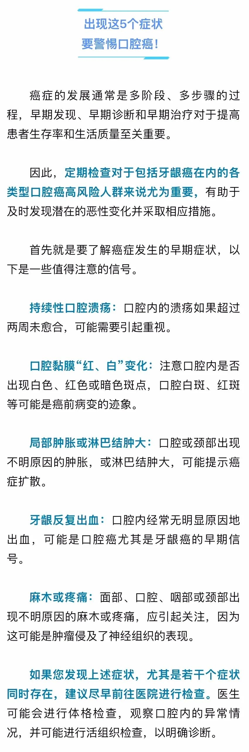 了解这些危险因素,有助于采取预防措施,降低口腔癌的发生率。