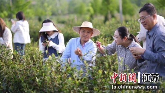 游客在茶博园里体验采茶。铜山区委宣传部供图