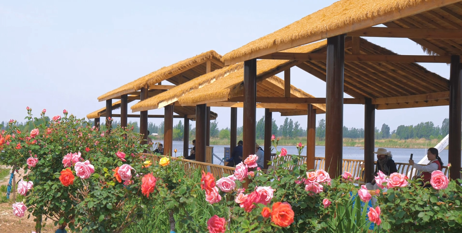 徐州市铜山区柳泉镇北村是当地有名的“网红村”,这里的“网红景点”则是依微山湖而建的楼山湾湖光田园度假区。园区中的月季园占地近百亩,3万余株各类月季盛放枝头,花香四溢。
