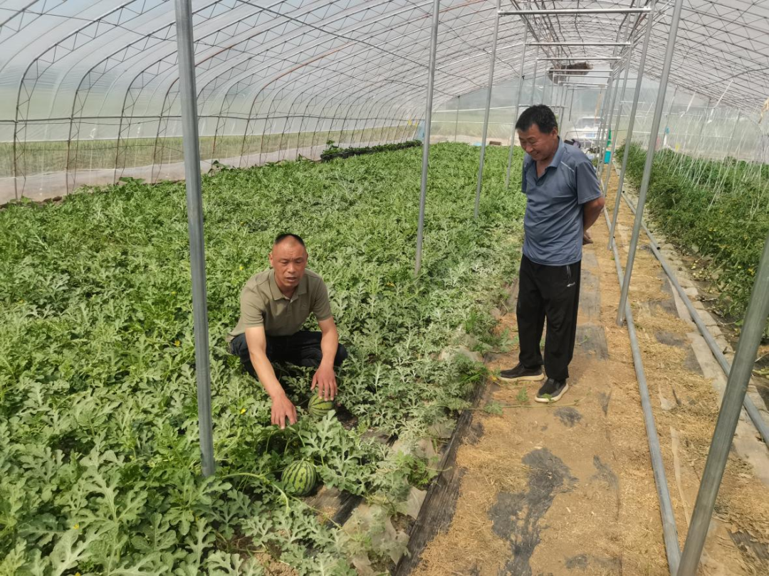 4月28日,梁庄村党总支书记徐高产到西瓜种植大棚,查看西瓜生长情况。梁庄村积极发展特色种植业,推动西瓜产业成为村民致富的新途径,助力村集体经济壮大。
