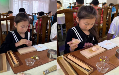 “茶果子”大多以自然界的花草树木为原型,纯手工制作。这次,我有机会跟着老师学习制作茶果子,特别开心。