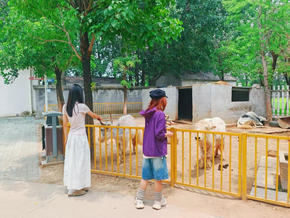 刚走进萌宠乐园,就见牦牛甩着尾巴站在坡上,阳光把它们身上的绒毛镀成金棕色。它们冲着我们“哞哞”叫唤,看起来对我们的到来很是开心。不远处,有只鸸鹋伸长脖子张望,一些兔子在围栏里蹦跳,我们还看见了小小的鼹鼠正从洞里探出脑袋——这一切对我们来说是如此新奇,镜头中的生灵活泼可爱,让人看了直呼治愈。