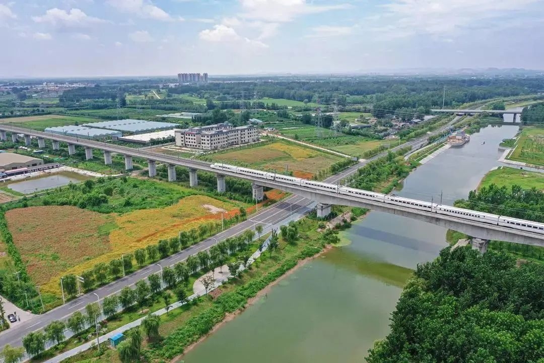 ▲徐盐高铁和故黄河观光路相交汇