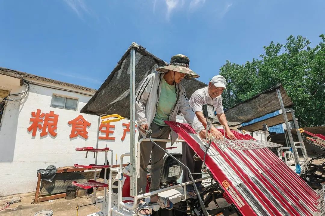 ▲插秧结束后,农技人员认真保养插秧机