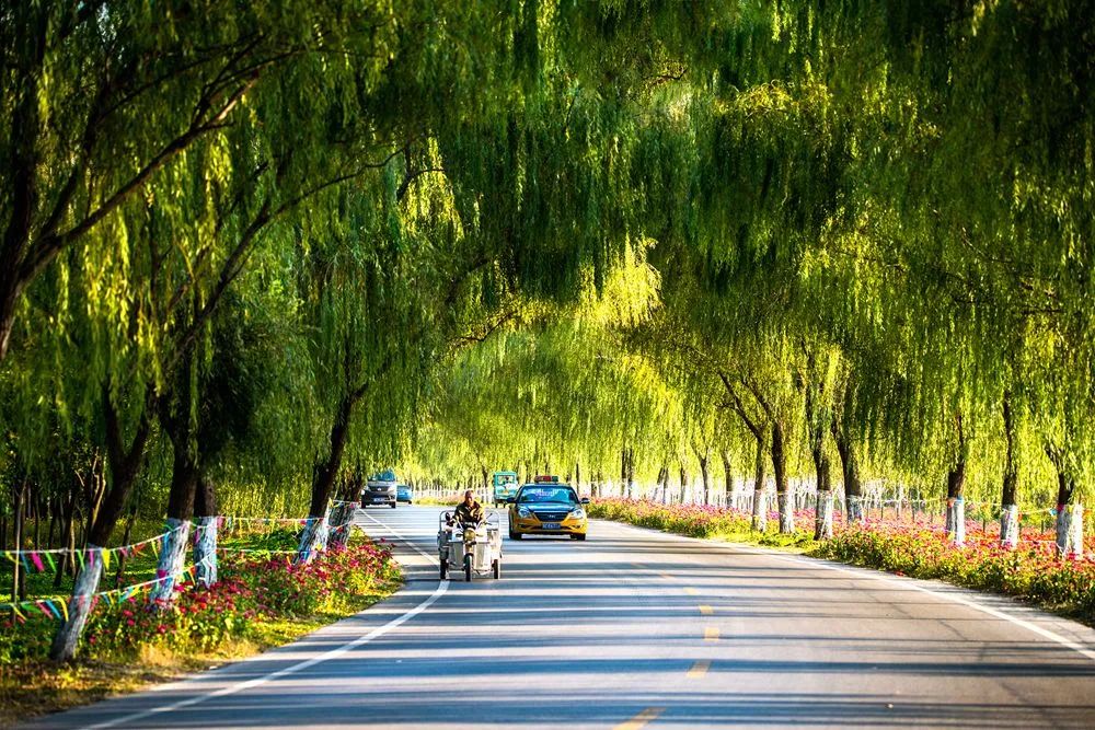 这里,行道树郁郁葱葱,路两旁各色鲜花竞相开放,特色鲜明的农家小院静待游客,更有故黄河碧水波光相伴在侧......