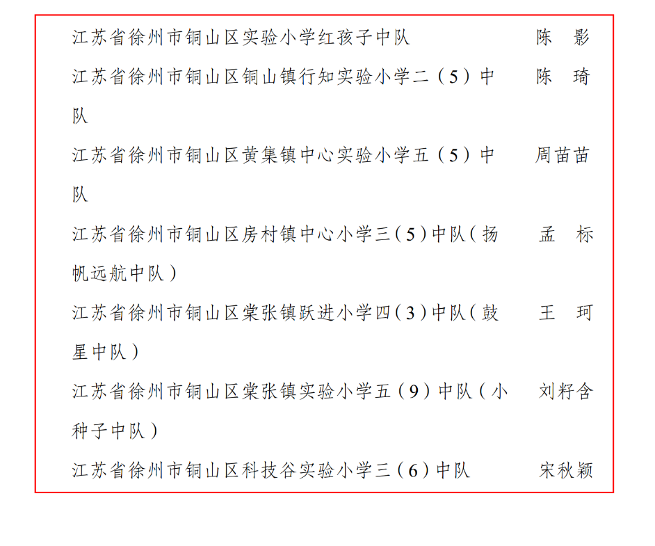 共7所学校的中队上榜