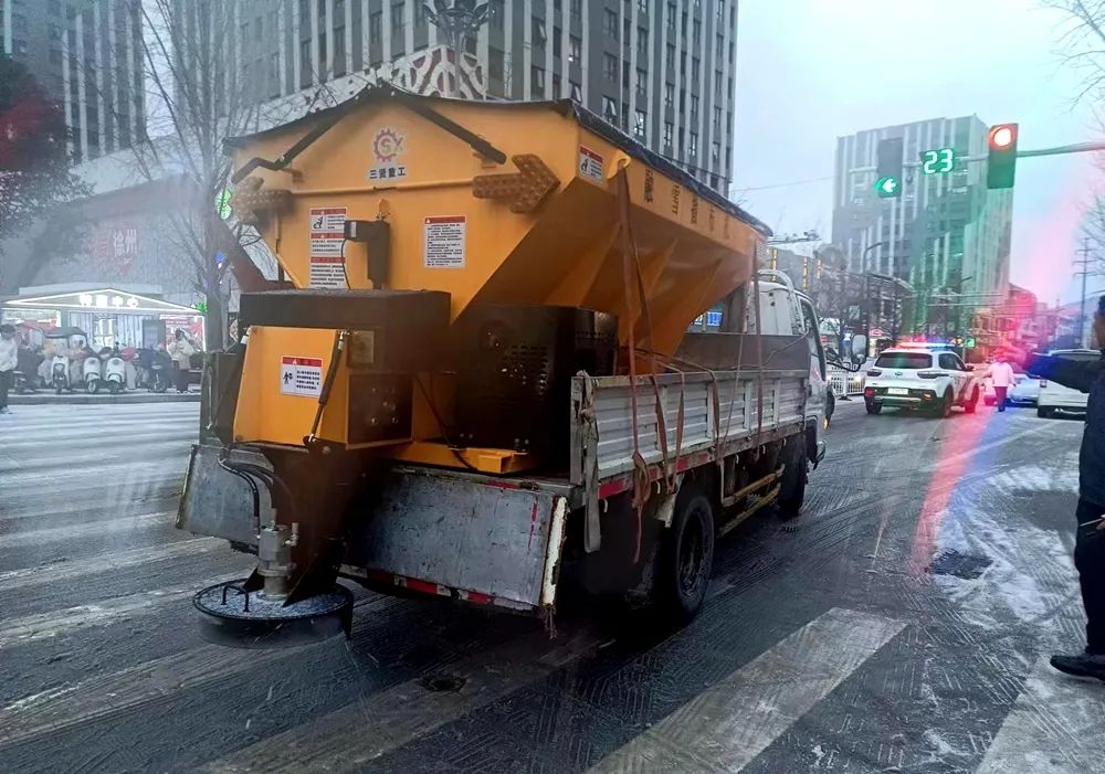 铜山公安、交通、城管部门立即启动恶劣天气应急处置预案,在坡道、桥梁、隧道等结冰路段进行撒盐融雪融冰作业,全力以赴除冰雪、防事故、护平安,保障群众出行安全。